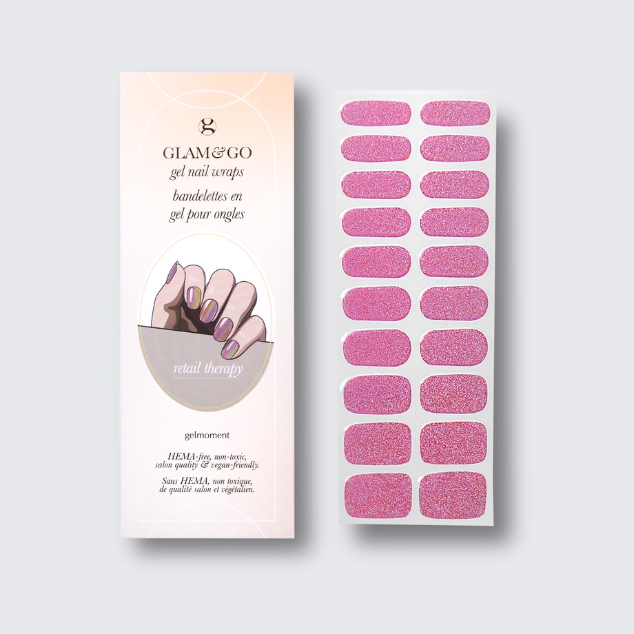 Plus, not only do GLAM & GO gel nail wraps provide the same glossy finish you know and love from our regular gel polish, but they are also HEMA FREE and have a wear time of up to 14+ days.